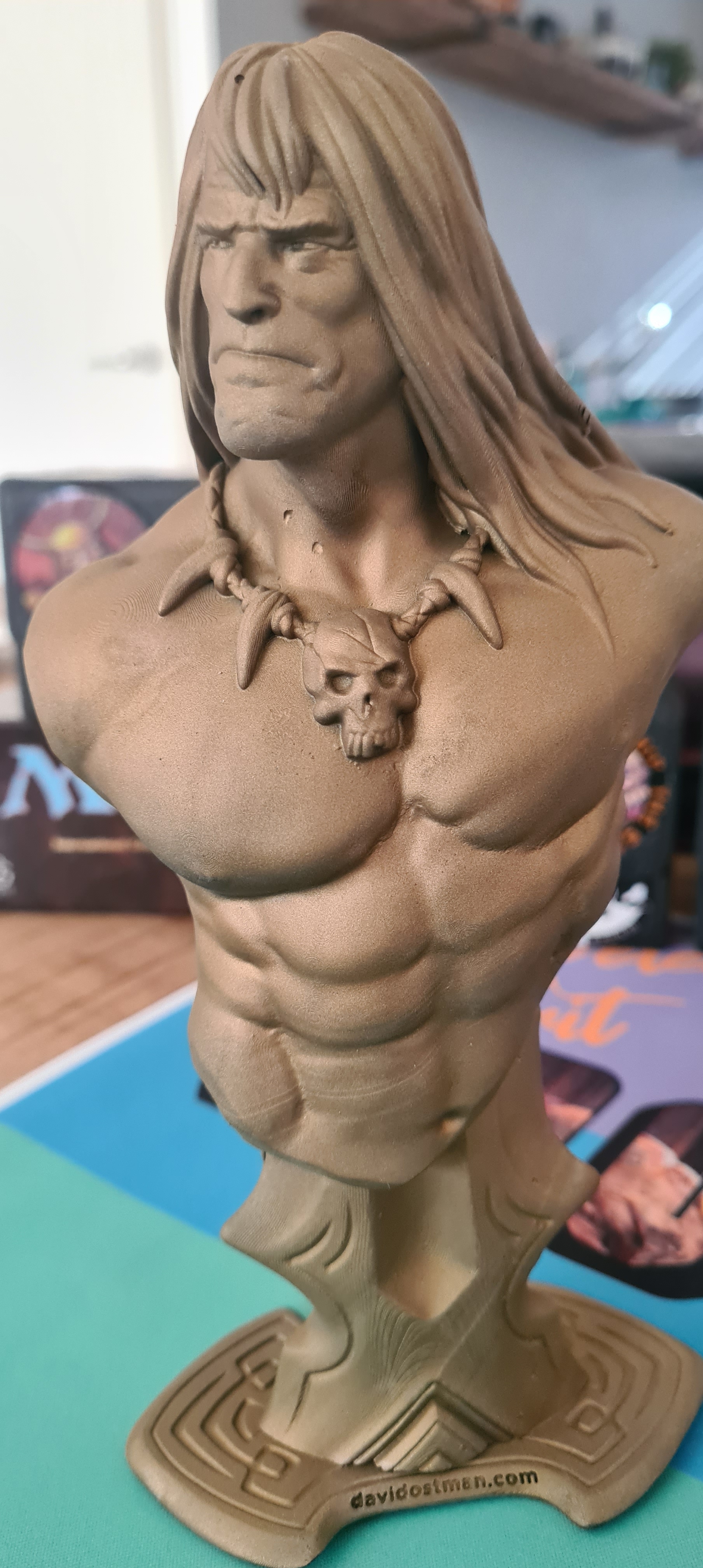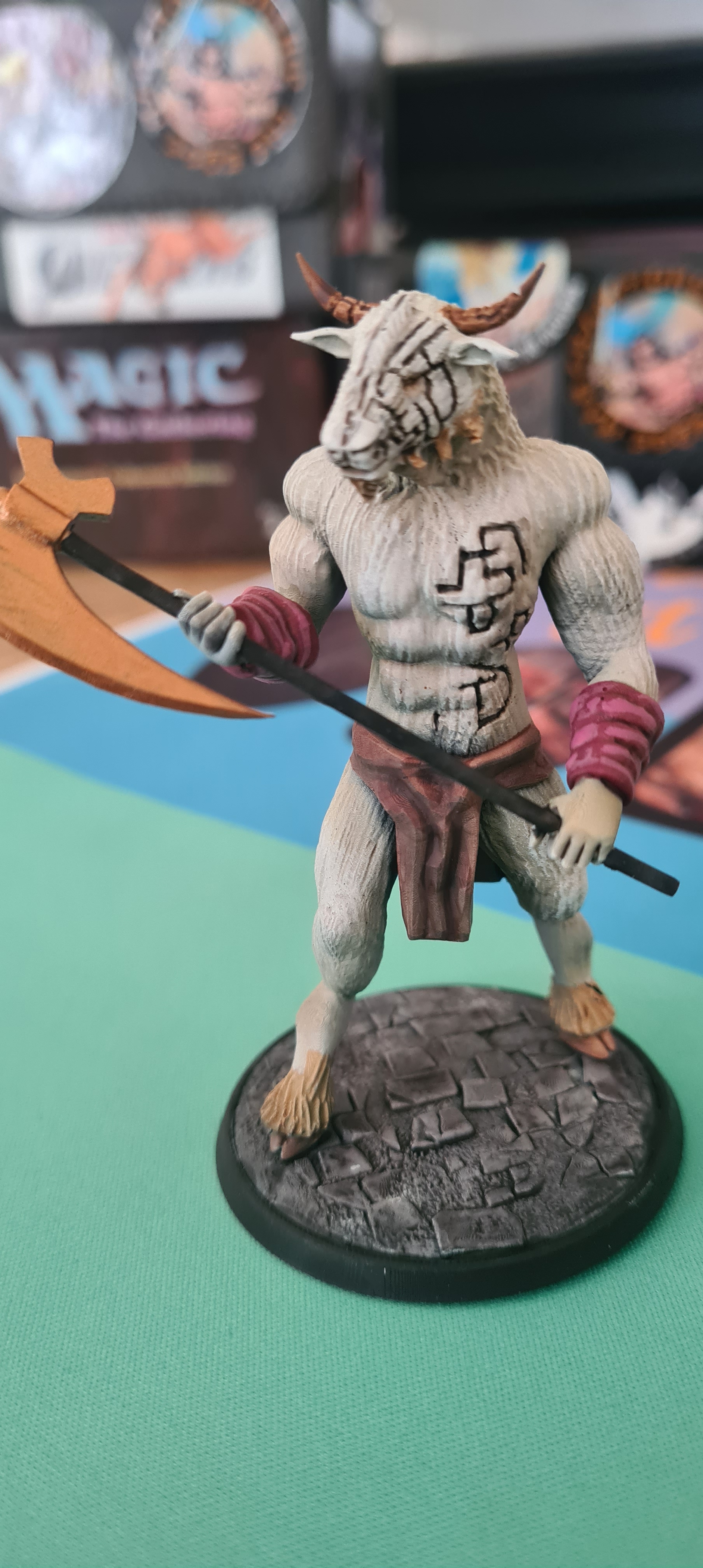 While I was busy stuffing my face with the delicious shoarma, I was greeted by many old friends from the Old School community. Familiar faces from all over the world had gathered, making it feel like a reunion of sorts. And it turns out, I wasn’t the only one who came bearing gifts! My German friend and Old School legend, Martin, completely blew me away with what he brought. First, a hand-painted 3D-printed model of the Hurloon Minotaur—an iconic creature and the face of Magic: The Gathering in its early days, featured in so many of the original ads. But that wasn’t all. He also gifted me a Conan the Barbarian patch, and something truly special: the new Edge-Man Championship Cup! It was absolutely massive and looked unbelievably cool, way beyond what I expected.
