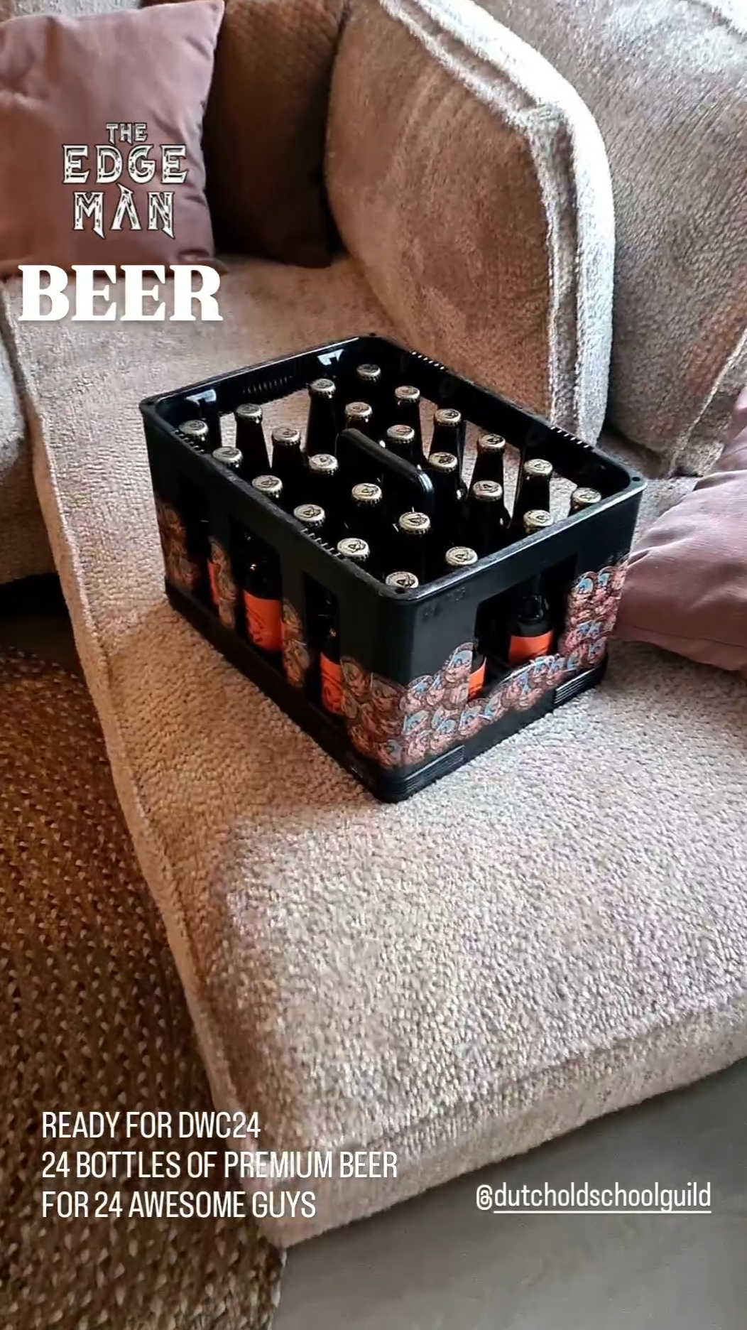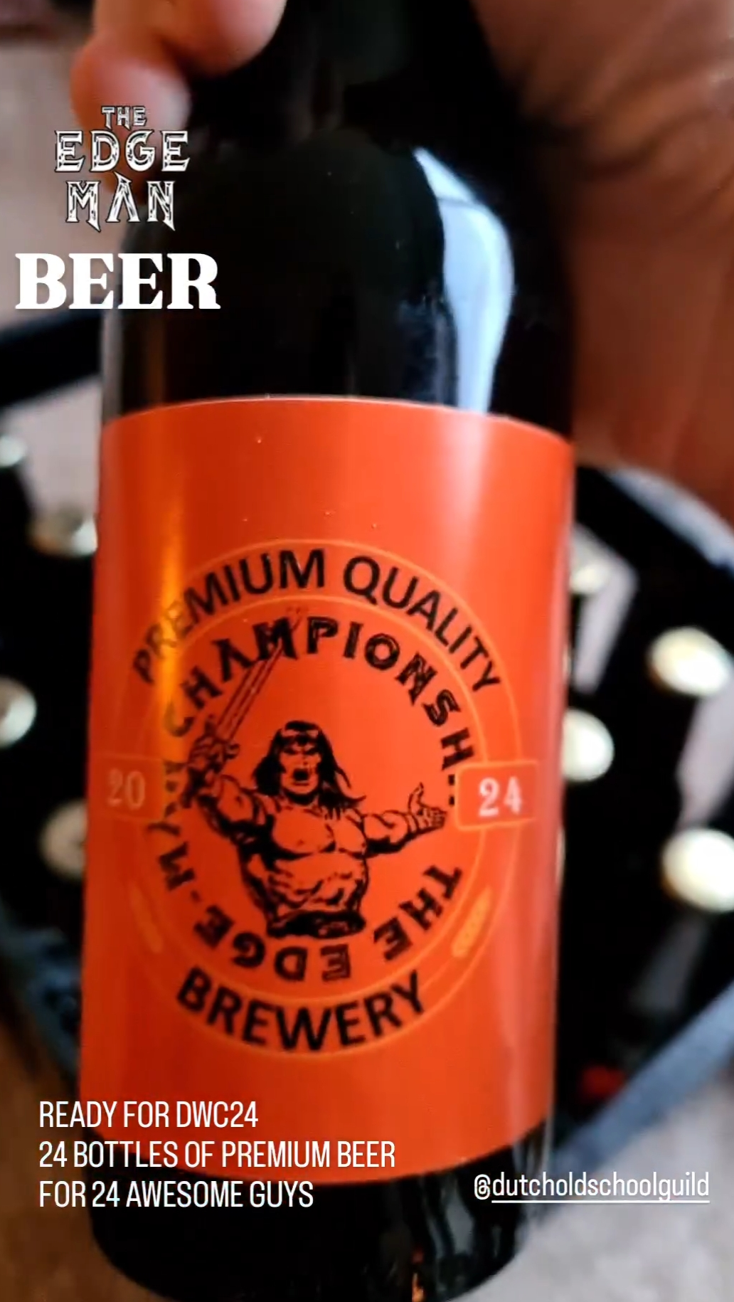 One of the things that makes the Dwarven Warrior Cup so special is that it’s more of a social gathering than a competitive tournament. Sure, you can technically win the tournament, but in true Dwarven Cup fashion, the Cup isn’t awarded to the victor. Instead, it’s handed to the player who deserves it the most, another testament to how Demmer—despite all his bravado—is just one big softy! 😉 The Cup is really a celebration of friendship, where everyone comes together to enjoy the game, drink beer, and share plenty of laughs. Knowing this, I couldn’t arrive empty-handed, especially as the organizer of the Edge-Man Championship. Since beer plays such a central role in the Dwarven Warrior Cup, I decided to bring along a bottle of Edge-Man Premium Beer for each of my fellow players. Of course, my daughter Noor insisted on helping out with the creation of a custom case to hold all the bottles. She’s still quite impressed by all the guys she met at the Edge-Man Championship! The end result looked fantastic and with that I was ready to travel to Voorthuizen, where the event was held!