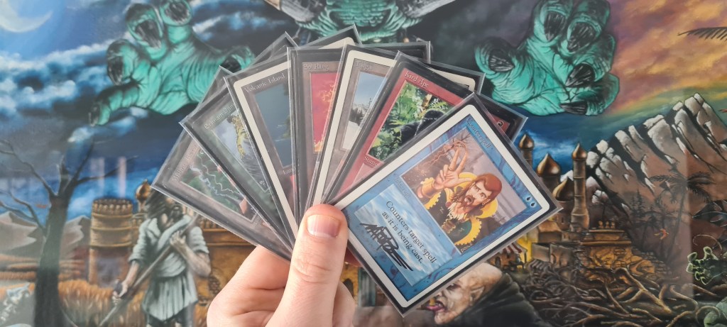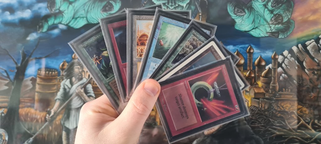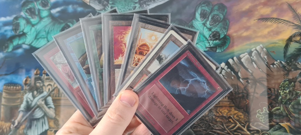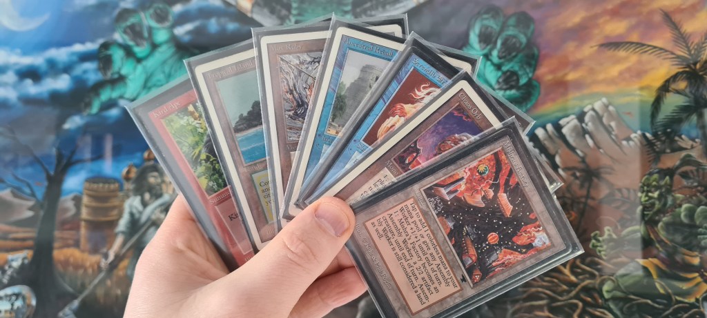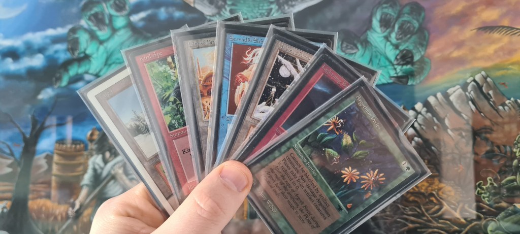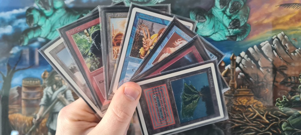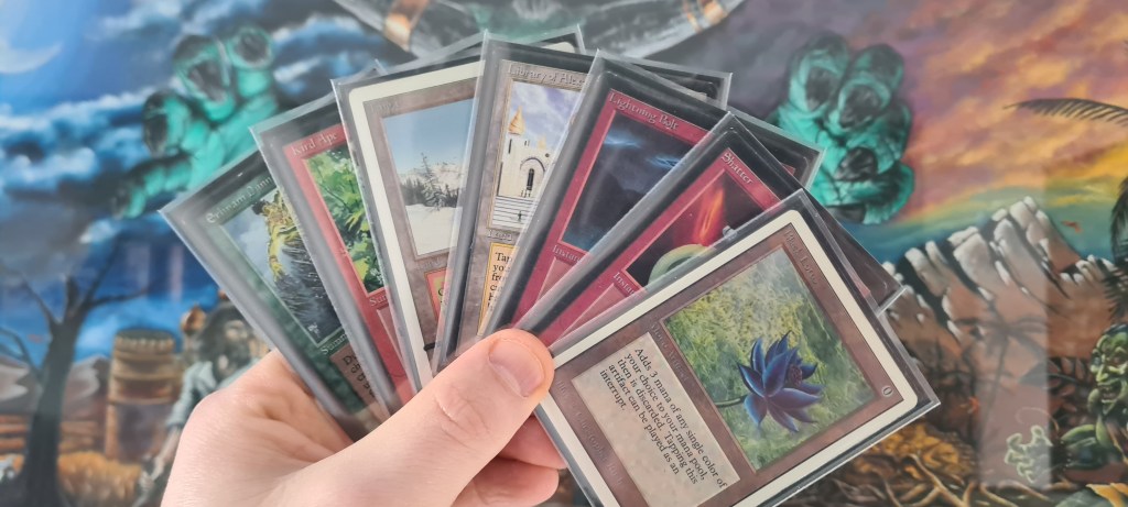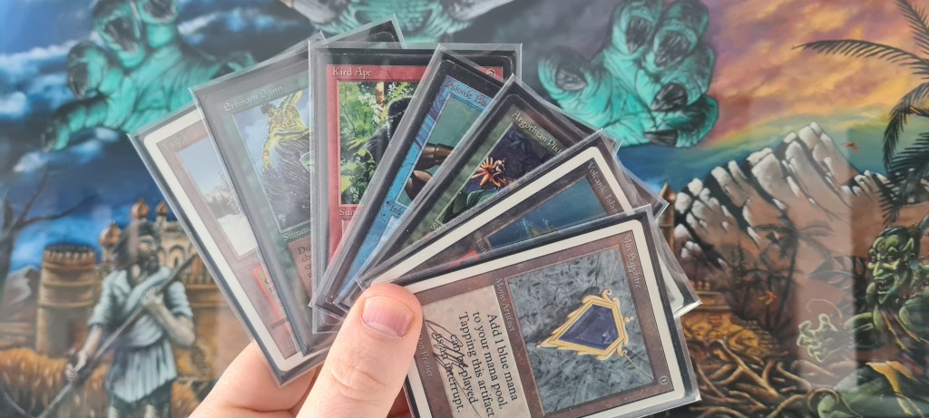Cards: Power Sink • City of Brass • Time Walk • Mox Sapphire • Kird Ape • Library of Alexandria • Psionic Blast
