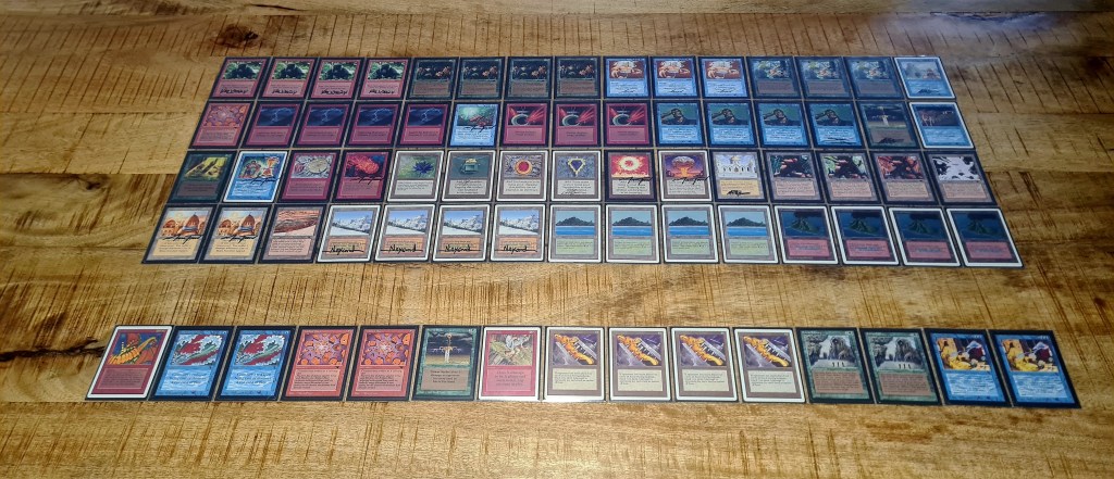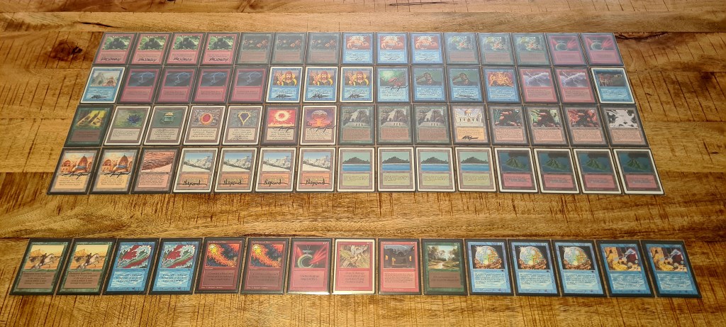 Basically the restricted “good stuff” list, combined with burn. The burn is so you can “pull the fucking trigger ’til it goes ‘click‘”. Add your standard mana base made out of duals plus a couple City of Brass to smooth everything out and you are set.