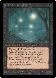 Partly because I wanted early answers to flying creatures. Partly because Wisps are secretly miserable little cards in exactly the way a mono black deck should be. And partly because attacking with them while a Bad Moon is in play sounds like the sort of thing that feels absolutely right. They also happen to share one of the great Old School keywords: regeneration.